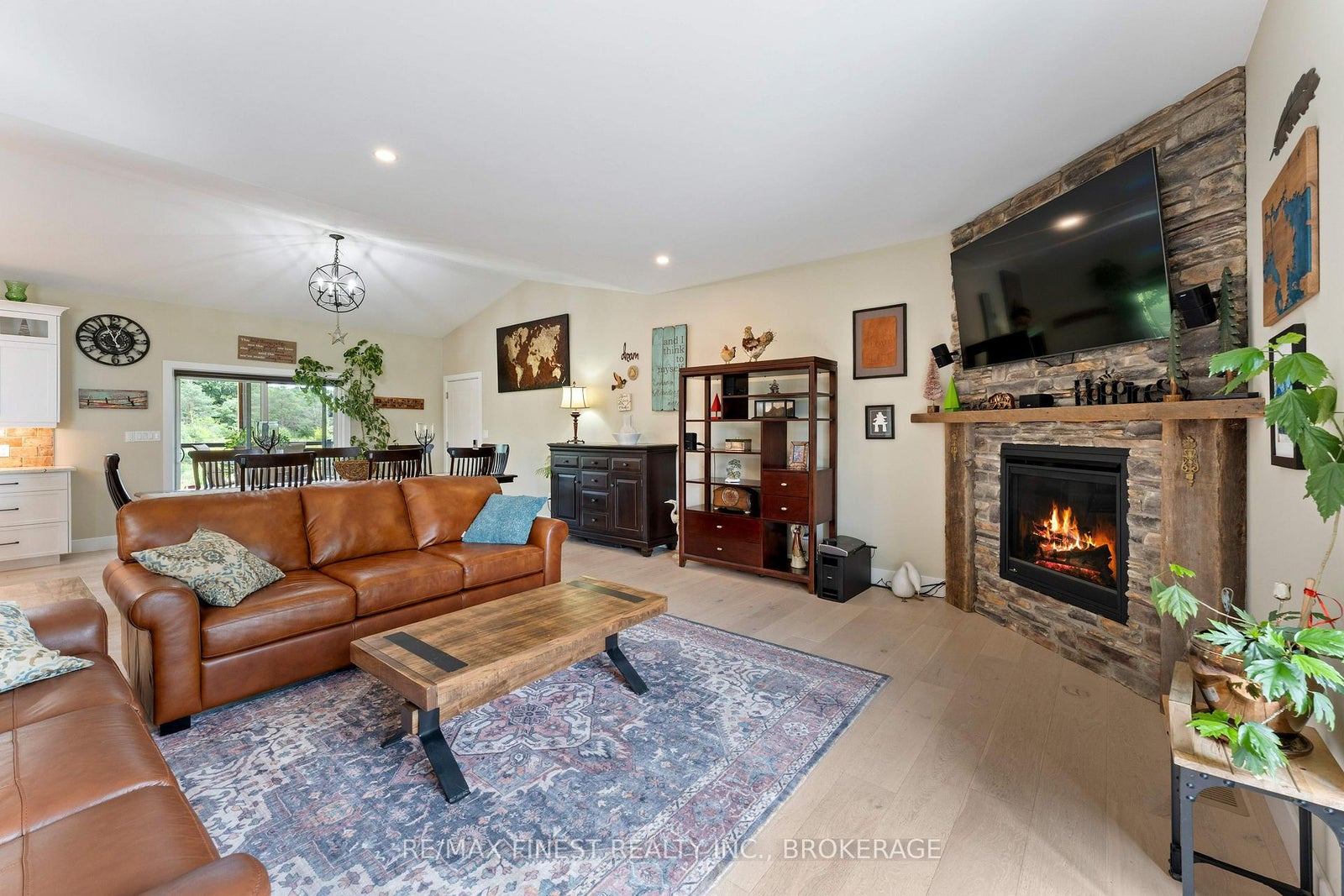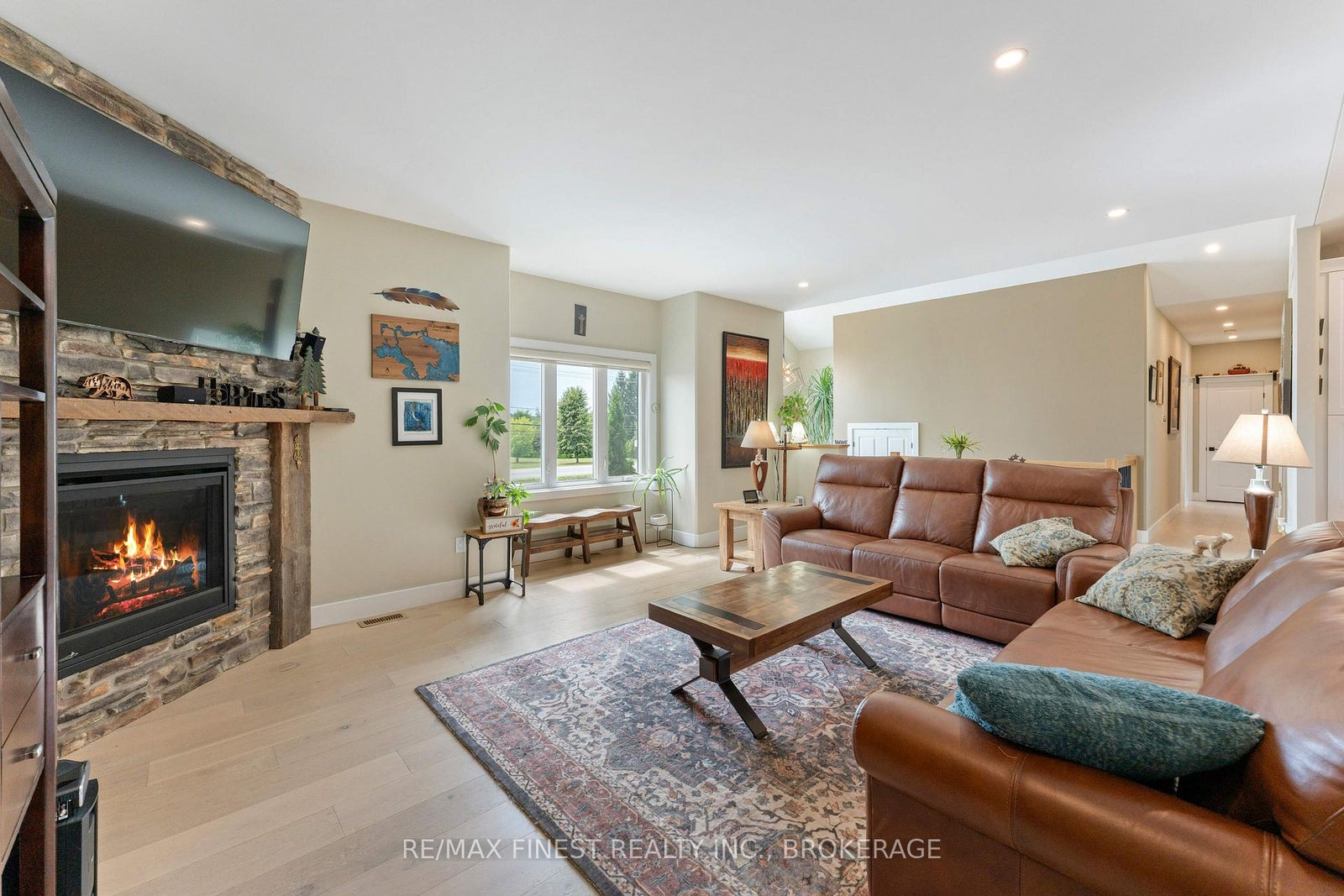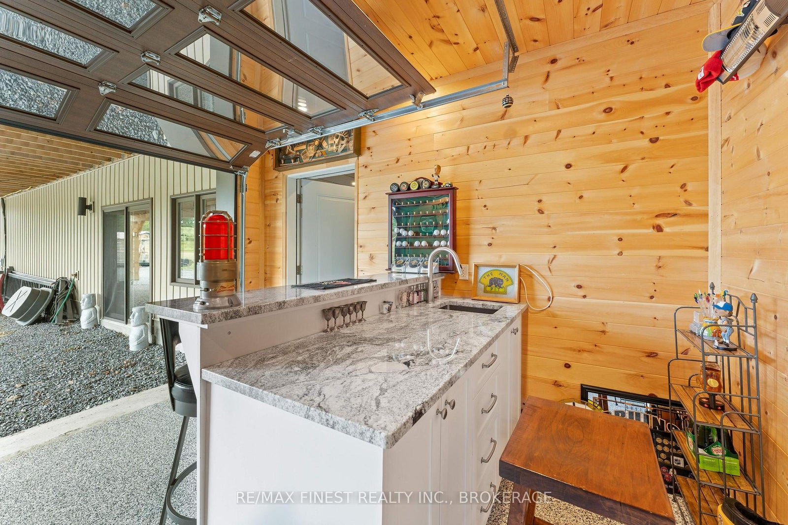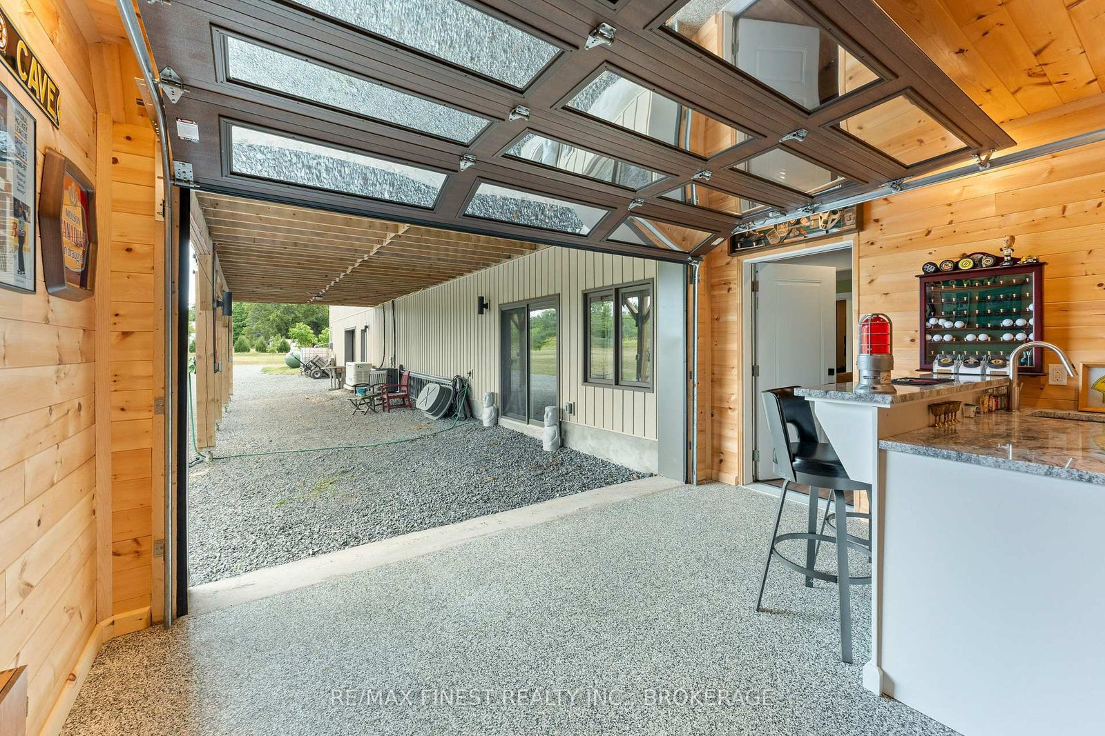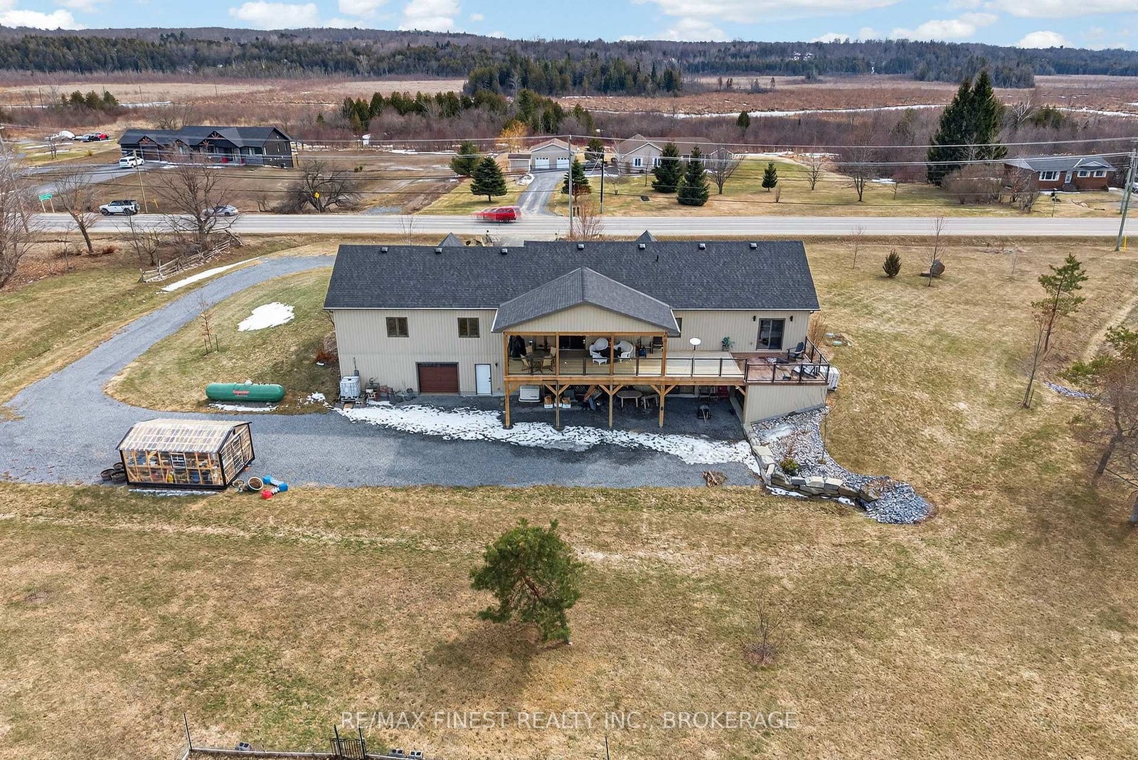 Thoughtfully designed, beautifully maintained, and upgraded throughout, this 5-year-oldbungalow offers a lifestyle as remarkable as its features. From the moment you arrive, the property's presence captivates with 3 acres of professionally landscaped grounds with trees, vibrant gardens, natural stone accents, and a 3-wide paved driveway that gracefully wraps around to the rear garage and patio. Inside, light-filled spaces blend comfort with sophistication. The open-concept main level is anchored by a stunning stone fireplace with a propane insert, creating a warm focal point in the living area. The kitchen showcases stone countertops, stainless steel appliances, and picturesque views of the private backyard. The primary suite is a retreat of its own, featuring a 4-piece ensuite with built-in vanity, walk-in closet, additional closet, and patio doors leading to a stamped-concrete balcony and an expansive 15x64' deck. A 30' section of this outdoor haven is fully covered, featuring a ceiling fan, pot lights, electrical outlets, and BBQ hookup - the perfect setting for morning coffee or evening gatherings. Two additional bedrooms and a 4-piece bath complete the main level. The lower level expands the possibilities with a large rec room, spacious bedroom, a separate den/home office, a 3piece bathroom, generous storage, a walk-out to the yard, and direct access to the lower garage. This two-level heated garage with six bays finished in epoxy provides endless options for a home workshop, car collection, or recreational toys. A dedicated backyard bar room, with a wet bar, epoxy flooring and a roll-up glass garage door opens to the patio below the deck, offering a distinctive venue for year-round entertaining. A 20KW Generac generator ensures peace of mind in all seasons. Positioned between Harrowsmith and Sydenham, this home combines the tranquility of rural living with access to local amenities and only 20 minutes to Kingston.